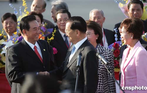 中共中央臺(tái)辦主任陳云林、中共江蘇省委副書(shū)記任彥申、中臺(tái)辦副主任李炳才與當(dāng)?shù)囟辔还賳T趨前到舷梯前迎接。