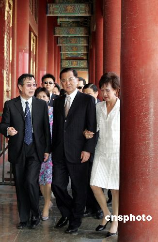 連戰(zhàn)訪團(tuán)隨即穿太和門,踏漢白玉塔基拾級(jí)登臨故宮內(nèi)最雄麗的太和殿,有記者詢問:“連戰(zhàn)主席,能不能談?wù)勀鷮?duì)故宮的看法?”連戰(zhàn)連嘆“很好、很好”,其夫人連方瑀也不住的頷首示意。