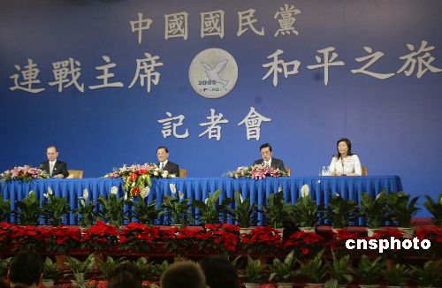 四月二十九日,中國國民黨主席連戰在北京飯店舉行和平之旅記者會。會上宣讀國共兩黨主席會談新聞公報,并回答記者們的問題。作者:史利