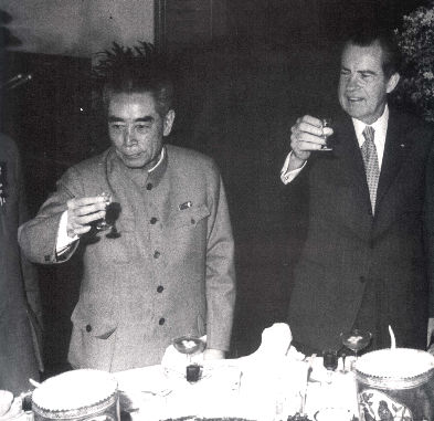 汽車到達體育館,敏感的日本記者發(fā)現(xiàn)兩人站在一起愉快地聊著,用照相機攝下了這個鏡頭。第二天,日本三大報《朝日新聞》、《每日新聞》、《讀賣新聞》的頭版顯著位置,圖文并茂地刊載了兩人握手、交談的圖片,有的還加了橫欄標題:中美接近。