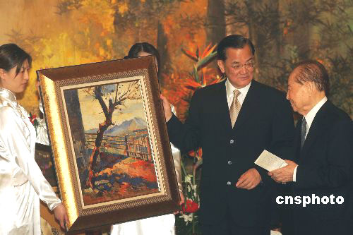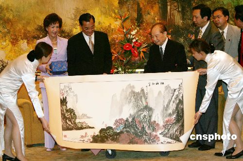 會見中,汪會長向連戰主席贈送了北京一位九十多歲的名畫家秦云嶺所畫的《江山如畫》及一九八三年與一九九六年在大陸出版的連老先生兩本著作;連主席轉交了辜振甫夫人的一封信給汪會長,并向他贈送了辜先生年青時代居住陽明山俯瞰紗帽山所創作的一幅油畫的復制品、臺灣琉璃名家王俠軍作品《宏圖》以及祖父連橫先生名作《臺灣通史》與他個人著作《改變,才有希望》。