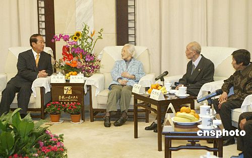 返鄉祭祖的宋楚瑜及家人9日中午在湘潭盤龍山莊與大陸親屬會面。分隔56年的親人一朝相見,不少人都當場流下了熱淚。