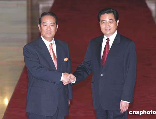 下午3時許,中共中央總書記胡錦濤與親民黨主席宋楚瑜在北京人民大會堂北大廳握手。這是中國共產黨和親民黨兩黨最高領導人首次會面。