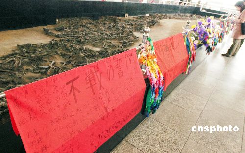 日本侵略者這種滅絕人性的殺戮行徑,令人神共憤,不僅讓中國(guó)人民刻骨銘心,也讓世界和平與正義人士義憤填膺。在“平頂山慘案紀(jì)念館”內(nèi),記者看到了許許多多來(lái)自日本的千紙鶴懸掛在遇難者遺骸的四周,這是日本“東日本鐵路工會(huì)代表團(tuán)”等等那些日本和平正義人士敬獻(xiàn)給這些無(wú)辜遇難者冤魂的。“平頂山慘案紀(jì)念館”館長(zhǎng)肖景全告訴記者,“平頂山慘案”遺址自上世紀(jì)七十年代開挖以來(lái)便不斷有日本游客前來(lái)參觀。三十多年來(lái),已有數(shù)十萬(wàn)人次日本人到撫順參觀“平頂山慘案”遺址紀(jì)念館。每一位目睹“慘案遺址”的參觀者,面對(duì)累累白骨,無(wú)不為當(dāng)年日軍的殘暴所震驚。(完)