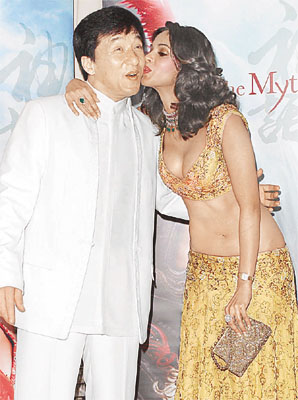 《神話》在影展中播出了大約一分多鐘的片段,當中除了千軍萬馬的大場面,金喜善寬衣解帶為成龍療傷的場面也很有看頭。成龍在記者會上表示雖然戲中和金喜善有感情戲,但堅拒激吻,唯一的激情戲中,金喜善卻笑不停,浪費了很多時間,也讓成龍忍不住問:“到底我這個樣子有什么好笑!”