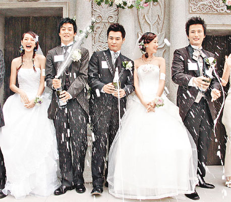 四人原本已私交甚篤,如今合作闖樂(lè)壇,感情再跨進(jìn)一步,昨日更公然“打情罵俏”,子維笑說(shuō)﹕“我想同Daniel結(jié)婚。”Daniel則回應(yīng)﹕“看你的鉆石戒指有多大啦。”昨日四人本來(lái)各有女伴扮新娘,因徐子淇仍身在英國(guó)求學(xué),Daniel全程唱獨(dú)腳戲,不及其他三子“艷福無(wú)邊”。