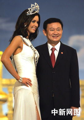 圖:2005環球小姐冠軍與泰國總理他信合影