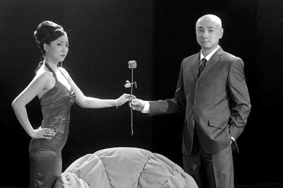 5月30日下午,記者走進煤礦文工團的安源小劇場,只見陶虹身穿一件紫紅色的露肩晚禮服,徐崢則穿著一身筆挺的西服。他們兩人分別站在一個紅色布藝沙發的兩側,頭頂上是大量的聚光燈。劇場里的陣勢和時尚節目的拍攝別無二致?墒牵蘸、徐崢卻是在為他們二人主演的戲劇《最后一個情圣》拍攝電視宣傳片。