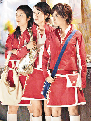 千嬅(左起)、Toby與戴夢夢齊以啤酒妹造型示人。