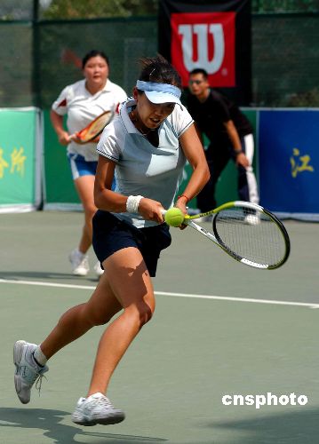 2005年6月3日,湖南籍選手湘妹組合于瑩/楊舒靜負于對手,無緣2005國際女子網球挑戰賽女雙決賽。作者:劉建民