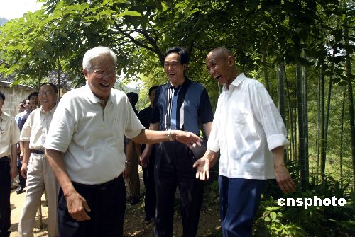 圖:羅豪才實(shí)地考察大別山區(qū)扶貧