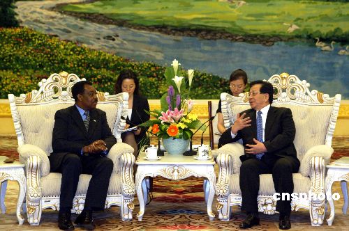 六月六日,中國國家副主席曾慶紅在北京人民大會堂會見赤道幾內亞外長。作者:廖文靜