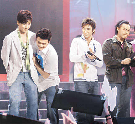 霆鋒在臺上同Kenny有講有笑,Eason面上則掛著一個奇怪表情。