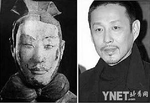 這些兵馬俑當中,有的臉型狹長,凝神沉思,很像是陜西籍演員馬躍;有的濃眉大眼,粗獷豪放,簡直就是電視劇《水滸傳》中“黑旋風”李逵的扮演者趙小銳的“翻版”;而有的則小眉小眼,活像演員劉亞津;有的則神清氣朗,英氣逼人,眉宇之間神似演員陳道明(見配圖)。
