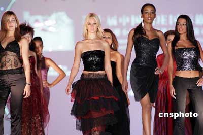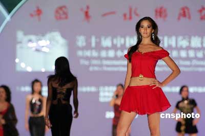 6月22日晚,參加2005年國際旅游小姐大賽的佳麗們在中國江南古鎮周莊的T型臺上演繹一場名為“東情西韻”的時裝秀,為第十屆中國周莊國際旅游節畫上圓滿句號。作者:毛建軍