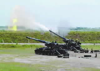 中新網(wǎng)6月24日電 在臺軍陸軍第10軍團23日在大甲溪與大安溪口執(zhí)行同時不同區(qū)火炮射擊與陸軍空騎旅、空軍戰(zhàn)斗機及海軍導彈快艇射擊演練時,被視為目前臺軍最先進的火炮——今年首度進行實彈射擊的M110A二式8吋自走炮露面。