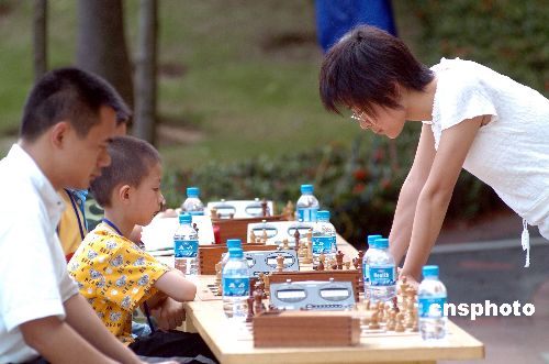 秦侃瀅與國際象棋中外愛好者對弈。作者:吳峻