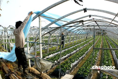 2005年6月29日,據財政部部長金人慶近日披露,到目前為止,已經明確免征農業(yè)稅的省份新增山西、內蒙古等19個,加上去年已經免征和基本免征農業(yè)稅的8個省份,2005年可提前實現免征農業(yè)稅的省份將達到27個,其余的河北、山東、廣西、云南4省(區(qū))2005年有217個縣(市)也將免征農業(yè)稅。今年享受免征農業(yè)稅的農民將達到8億人。圖為寧波農村一蔬菜專業(yè)戶正在為大棚更換農膜。作者:張和平