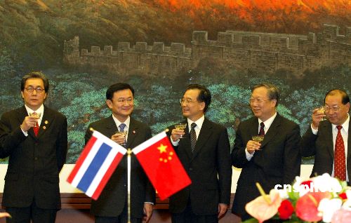 溫家寶指出,鞏固和發展中泰睦鄰友好合作是中國政府的既定政策,中方愿與泰方一道繼續努力,全面推進中泰友好合作。溫家寶在會談中對中泰關系的未來發展提出以下希望:一是以中泰建交30周年為契機,進一步加深兩國戰略性合作關系,及時就重大國際和地區問題交換意見;二是加強兩國企業界的聯系,不斷優化貿易結構,探索新能源的開發與利用,提高經貿合作水平;三是深化兩國安全合作,促進文化、旅游的交流與交往;四是積極落實中國與東盟戰略伙伴關系行動計劃,推動亞洲區域合作不斷向前發展。