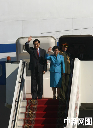 當地時間七月三日下午,中國國家主席胡錦濤和夫人劉永清乘專機抵達哈薩克斯坦首都阿斯塔納,開始對哈進行國事訪問,并出席上海合作組織第五次元首峰會。作者:齊彬