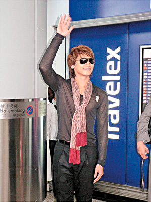 中新網7月4日電 據香港《大公報》報道,韓國人氣紅星Rain昨日旋風襲港,大批歌迷一早聞風而至,在機場苦候這位超級偶像的出現,幸得警方及保安員的嚴陣保護,才未有亂事發生。航機原定昨早十一時十分從北京抵達香港,遲至十二時二十分,Rain才步出機場,由于Rain太疲累的關系,當他下機之后,亦須化妝整頭,經過整理后,架著墨鏡的Rain便隨即步出機場,身穿黑褸、黑褲配以透視襯衫之外,Rain頸項上更圍著紅頸巾,黑褸上更帶有一個烏龜襟章,看來有型有款,星味十足。