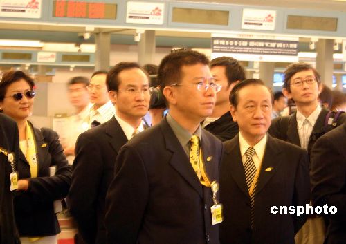 中新社臺北七月六日電 (記者 劉舒凌 路梅)六日上午十時,新黨主席郁慕明率“新黨紀念抗戰勝利六十周年大陸訪問團”從桃園機場出發,搭乘華航CI-605航班前往大陸訪問。