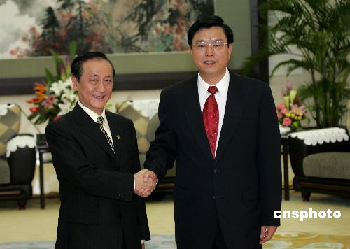 中新社廣州七月六日電(記者 趙海燕 郭軍)中共中央政治局委員、省委書記張德江六日傍晚在此間珠島賓館會見了甫抵廣州、由新黨主席郁慕明率領的“新黨紀念抗戰勝利六十周年大陸訪問團”一行。