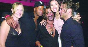 在邁阿密某夜總會泡吧的鞏俐和法瑞爾,最右邊是法瑞爾的哥哥。