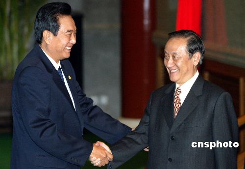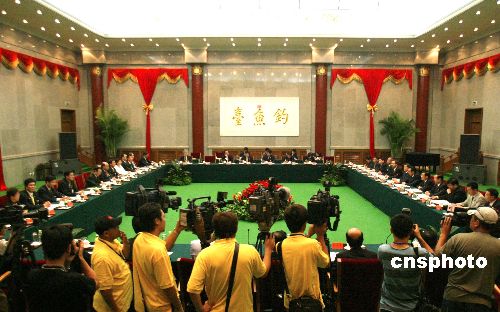 七月十日,中共中央臺灣事務辦公室主任陳云林與新黨主席郁慕明在北京舉行會談。作者:廖文靜