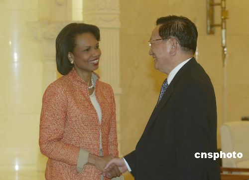 唐家璇會見賴斯 就朝鮮半島核問題交換意見