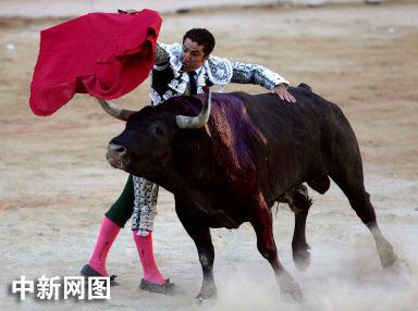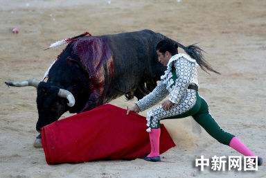 圖:西班牙潘普洛納奔牛節上舉行斗牛表演