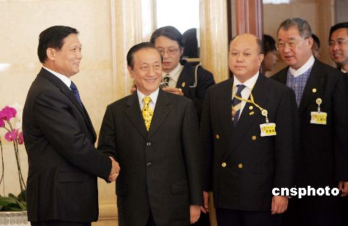 中共北京市委書記劉淇七月十一日在北京飯店會見臺灣新黨主席郁慕明率領的臺灣新黨“民族之旅”訪問團。作者:毛建軍
