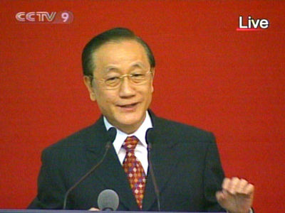 7月12日新黨主席郁慕明在中國人民大學逸夫會議中心演講。(央視截圖)