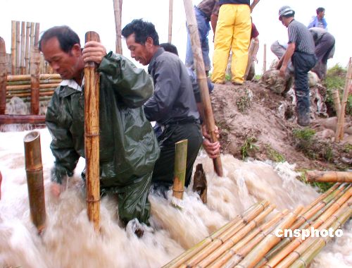 7月20日下午3時左右,因受5號臺風“海棠”影響,浙江溫嶺濱海鎮團結水系和金清水系交界的防洪堤,被沖開3米多長的決口,金清水系倒灌團結水系,水位落差達1米多,水流洶涌。如不及時修復決口,濱海鎮五灣以東的5萬多畝農作物將面臨被淹沒的危險。發現險情后,該鎮立即組織一支30多人小分隊進行搶險堵缺,經過4個多小時鏖戰,防洪堤決口終于被堵上。作者:鄭玲富