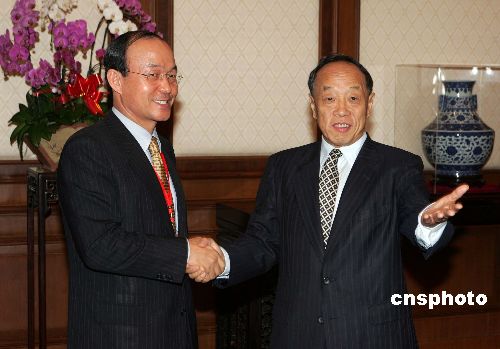 中國外交部長李肇星會見并宴請前來出席朝核問題六方會談的韓國外交通商部次官補宋旻淳。作者:毛建軍