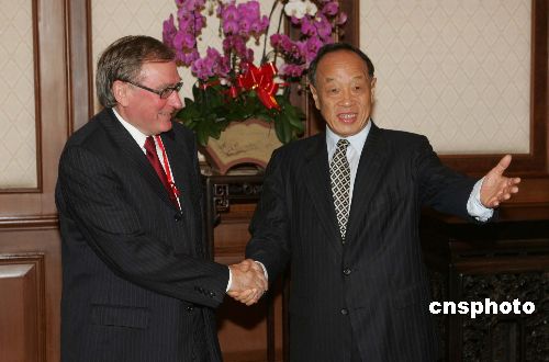 中國外交部長(zhǎng)李肇星七月二十五日在北京釣魚臺(tái)國賓館會(huì)見并宴請(qǐng)前來出席朝核問題六方會(huì)談的俄羅斯副外長(zhǎng)阿列克謝耶夫。作者:毛建軍