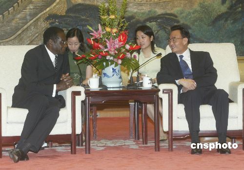 圖:吳邦國(guó)會(huì)見(jiàn)津巴布韋總統(tǒng)穆加貝