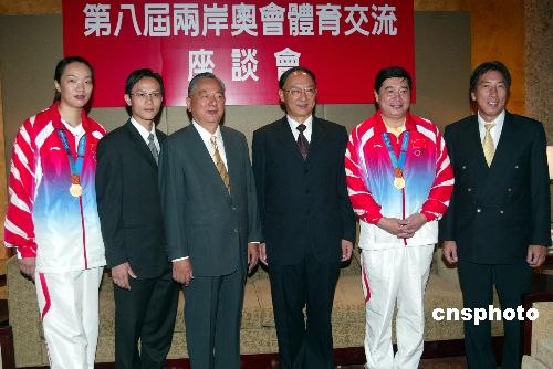 是次座談會,兩岸各有十人參與。座談會前,臺灣前射擊好手杜臺興手托大陸射擊隊總教練王義夫胸前的奧運金牌仔細端詳,并幽默地對記者說:“我老是被他(王義夫)‘干掉’!”曾奪得雅典奧運會男子跆拳道六十八公斤級跆拳道銀牌、現(xiàn)任臺“立法委員”的黃志雄,與大陸兩屆奧運女子六十七公斤級金牌得主陳中是老相識,交談甚歡。