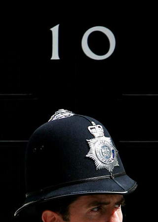 圖文報道:守衛倫敦首相府的一名英國警察