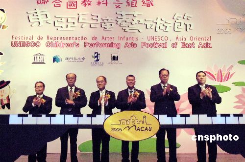 “聯(lián)合國教科文組織東亞兒童藝術節(jié)”,廿八日在澳門文化中心揭幕,有來自中國、日本、朝鮮、韓國、蒙古及澳門、香港等國家和地區(qū)兒童代表五百多人參加,澳門特區(qū)行政長官何厚鏵、聯(lián)合國教科文組織總干事松浦晃一郎等主持開幕式。作者:梁永強