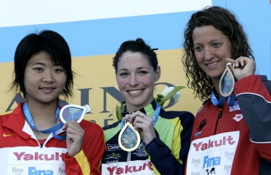 中新社蒙特利爾七月二十八日電(記者 夏宇華)十八歲的山東姑娘高暢不復(fù)昨日之勇,今天在女子五十米仰泳決賽中以零點(diǎn)零六秒之差敗在比她大五歲的澳大利亞選手魯尼手下,獲得一枚銀牌。