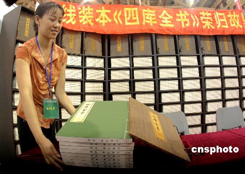 歷時四年手工印制的線裝300套《四庫全書》目前全部落版并裝訂成冊,7月28日首次在廈門展示,其中部分冊書將在兩岸圖書交易會亮相。據悉,為實現稀世鴻寶、舉世同珍的愿望,線裝版《四庫全書》限量發行,前100套用于捐獻、拍賣,其它各設100套國內版和國外版。整套書版將于8月在揚州毀版。作者:藍添藝