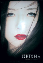 記者昨日在《藝伎回憶錄》的官方網(wǎng)站上發(fā)現(xiàn),一張以章子怡為主的酷似同名小說封面的海報已經(jīng)曝光。占據(jù)了畫面大半部分的是章子怡的臉,完全打扮成地道的日本藝伎的模樣,雪白的臉,鮮紅的嘴唇,黑色長發(fā)在臉旁飄動,造型非常妖艷,簡單但卻讓人印象深刻。