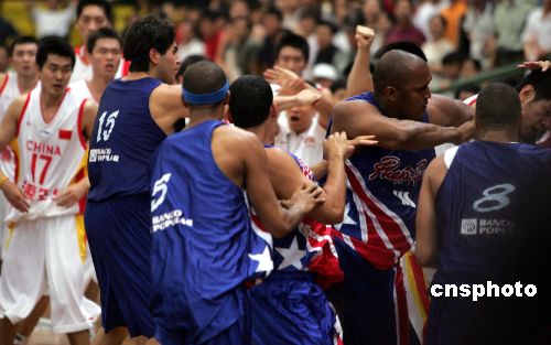 圖:中國男籃與波多黎各隊發生激烈沖突