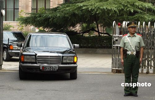八月四日,正在北京舉行的第四輪六方會(huì)談進(jìn)入第十天。圖為朝鮮代表團(tuán)團(tuán)長(zhǎng)金桂冠的車輛離開大使館前往釣魚臺(tái)國(guó)賓館。作者:廖文靜
