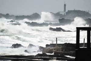 受馬莎臺風外圍環流影響,臺灣東北角海岸昨天下午起吹起陣陣強風,濺起滔滔大浪。(臺灣聯合報圖)