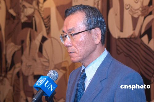 圖:日本駐聯合國代表大島賢三紐約接受記者采訪