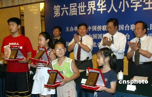 八月五日,由中國僑聯等單位主辦的第六屆世界華人小學生作文大賽在北京華僑大廈頒獎,隨著全球“漢語熱”的升溫,此次大賽吸引了三十一個國家和地區七百余萬華人小學生參賽,促進了世界各國華人少年兒童之間的文化交流。作者:史利