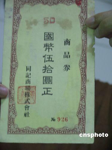 圖:“同記商場”商品券見證日本對華經濟侵略