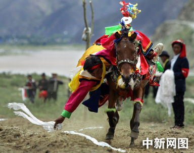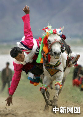 圖:西藏牧民在薩拉鎮舉行騎術比賽